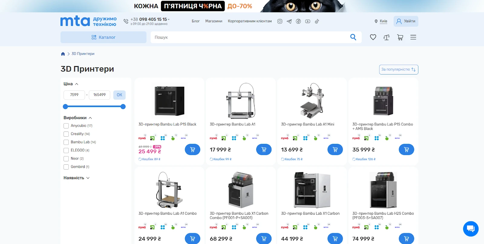 Ассортимент 3D принтеров на сайте МТА